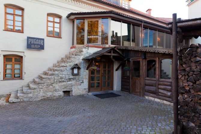 Бар «Рублев» находится в единственном неперестроенном каменном доме купчихи Статиной. Зал оформлен в духе древней и средневековой Руси. В создании интерьера использованы дерево и камень, декоративные винтажные элементы. В меню – блюда русской кухни и напитки, приготовленные по старинным рецептам. Еда подается в оригинально выполненной глиняной посуде. Фишкой бара являются блюда, приготовленные на открытом огне.