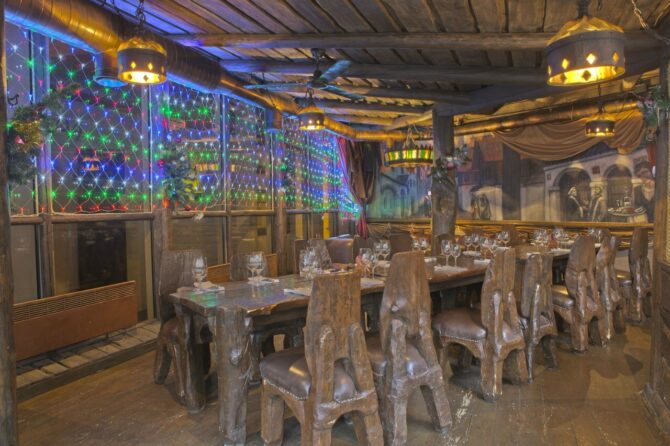 В обеденном зале ресторана часто проводятся мероприятия с приглашением артистов. За ужином можно послушать живую музыку или принять участие в тематическом шоу.