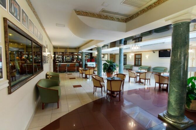 Лобби-бар находится в холле гостиницы. Он работает круглосуточно. Здесь всегда подадут хороший кофе и легкие закуски. В ассортименте представлены авторские десерты шеф-повара ресторана «Аристократъ» — торт из трех шоколадов, ягодный мифлей, вафельные трубочки с фисташковым кремом.