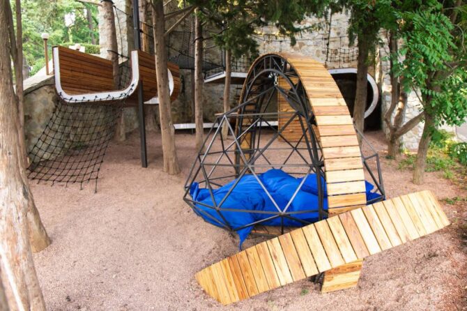 Уличные тематические площадки не менее любимы детьми. Это атмосферные локации, где можно поиграть, побегать и повеселиться. На пляже аниматоры устраивают костюмированные шоу, мини-спектакли, делают детям аквагрим. Главный центр притяжения для детей – комплекс горок, находящийся посреди уличного бассейна. Это настоящий мини-аквапарк, посещение которого входит в стоимость проживания.