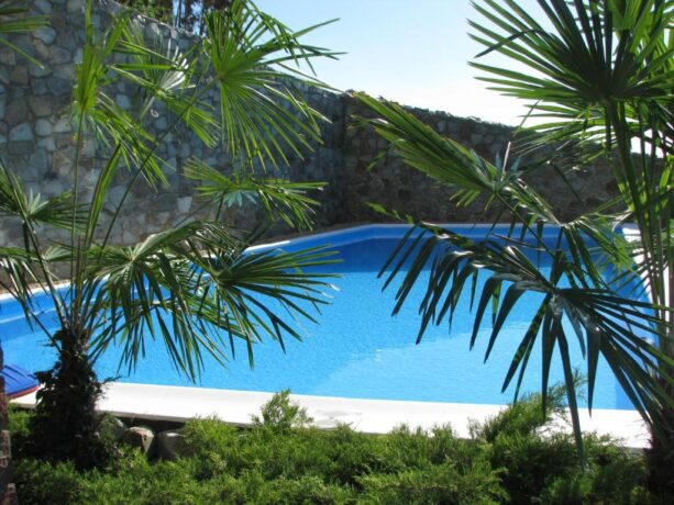 Гордость гостевого дома – небольшой прямоугольный бассейн с подсветкой на верхнем этаже, то есть фактически на крыше. Воду дезинфицируют хлоркой (запах просто невозможно перепутать), поэтому особенной популярностью этот бассейн у постояльцев не пользуется. По большому счету, бассейн в отеле, который стоит фактически на море – это компенсация от администрации за отсутствие собственного пляжа. Хотя они, конечно, считают его статусной игрушкой.