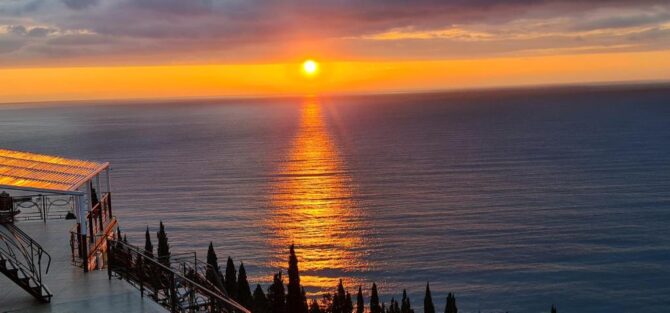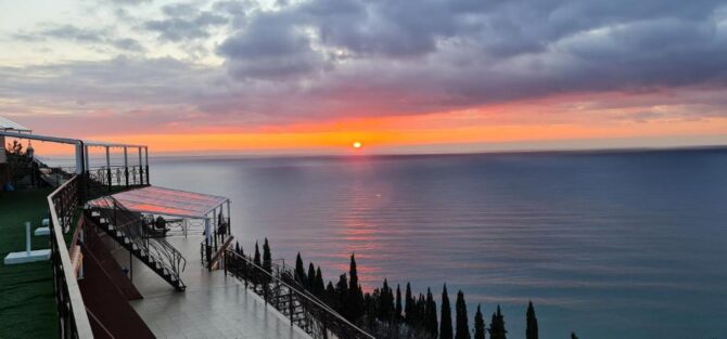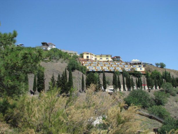 Собственно, так и есть: практически все приехавшие в Малореченское отбывают тут отпуск и уезжают – чаще всего, чтобы никогда не вернуться. И это настолько жаль, что слезы из глаз, ведь «Панорама» получила свое название не зря. Ее построили (кстати, не так давно, в 2014, в расчете на косяки жирненького российского туриста) прямо на горе в очень удачном месте, на небольшом мысе. Вид, который открывается с террас отеля, шикарен – от Аю-Дага до мыса Меганом, со всеми переливами Черного моря, с тонущим горизонтом и улыбками розовоперстой Эос, которая, как известно, живет где-то на ЮБК и никак иначе.