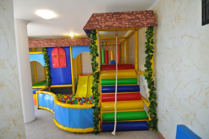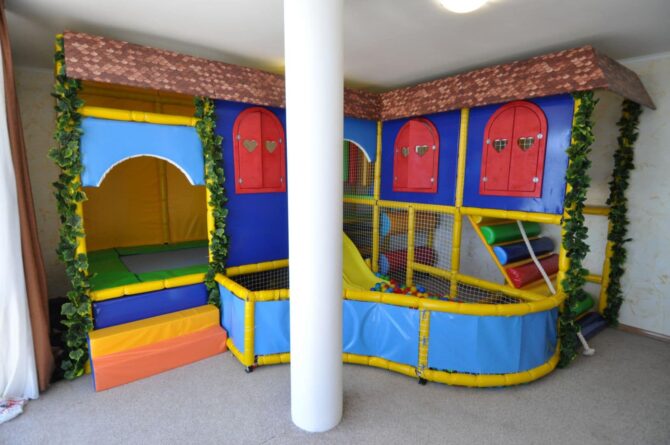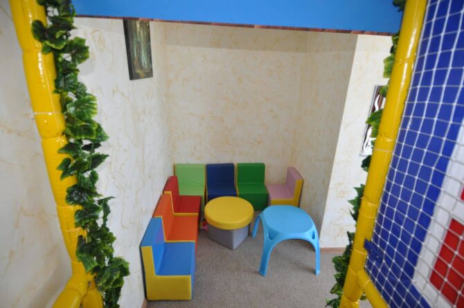 Отель принимает постояльцев с детьми, но не предлагает для них традиционных в сегменте скидок и не предоставляет детских кроваток. Дополнительное место (да-да, продавленная раскладушка) – за отдельную плату. Нет специальных номеров для гостей с самыми маленькими, но в отеле организована детская комната, а на закрытой территории есть игровая площадка. Из номеров прекрасно обозревается вся терраса, так что дети могут играть и там, постоянно находясь под присмотром.