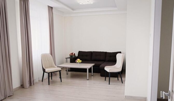 - Улучшенный стандарт с видом на море (24 кв. м). Для связи с администратором установлен телефон, на балконе имеется летняя мебель, в комнате кресла и журнальный столик.