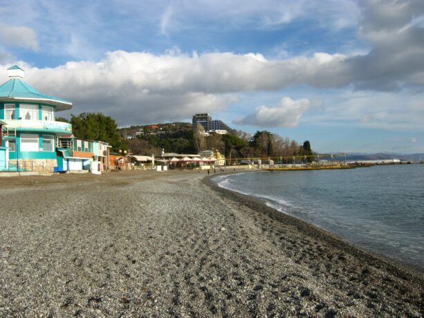 Ближе всего от отеля находятся пляжи Профессорского переулка. Это тихая и уютная зона, протянувшаяся на 2 с половиной километра. Справа расположены бесплатные, в левой части – частные пляжи санаториев и домов отдыха. Они разделены между собой волнорезами. Покрытие – мелкая и средняя галька с островками из сланцевого песка. Вход в воду пологий. Создана инфраструктура на хорошем уровне. Установлены навесы, работают прокаты шезлонгов и другого пляжного инвентаря. Купальный сезон начинается в мае. Но вода в это время еще холодная, поэтому купаться начинают с июня.