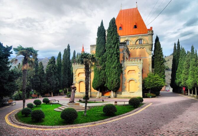 Если появится желание осмотреть самый красивый дом Алушты, то стоит отправиться в Приморский парк. Здесь находится старинный особняк купца Стахеева. Он был построен в 19 веке. В свое время на даче бывали самые знаменитые российские артисты, художники, писатели. Сегодня здесь базируется детский центр творчества. Юные крымчане с детства привыкают ценить прекрасное и вырабатывают в себе хороший вкус.