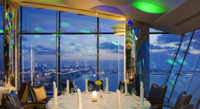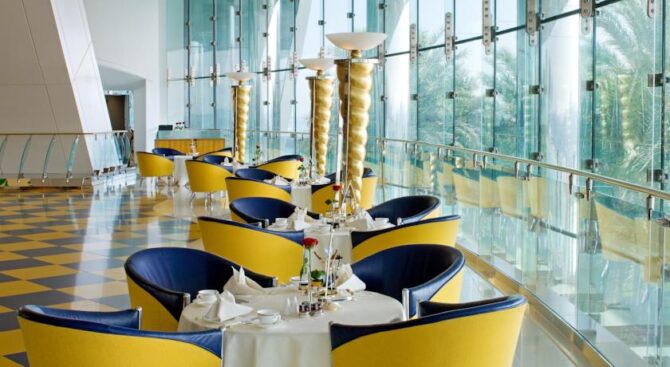 В баре, который носит название Sky View, посетителям Burj Al Arab Jumeirah предлагают насладиться ароматным крепким кофе или попробовать фирменные напитки заведения. Ресторан Al Muntaha угощает своих клиентов изысканными блюдами, созданными поварами по классическим европейским рецептам. Все цены 2017 в этих заведениях остались точно такими же, как и в прошлом году.