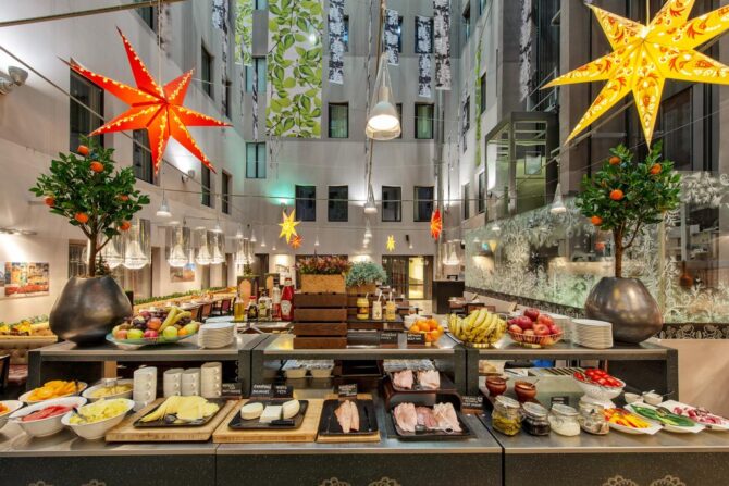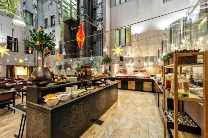 Для гостей отеля «Рэдиссон Соня» открыты двери «Метаморфозы» – роскошного ресторана. Меню включает русские и европейские блюда. Позиции сопровождаются интересными фактами из биографии Ф. Достоевского. Для вегетарианцев разработано отдельное меню. Завтрак подается по системе буфета («шведского стала») или а-ля-карт, когда гости выбирают блюда из предложенных позиций.