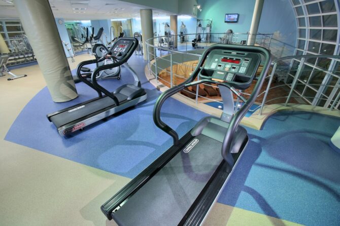 Тренажерный зал можно посещать и без СПА-процедур. В нем установлено новейшее кардио и силовое оборудование производства фирмы STAR TRАС. Укрепить здоровье или пройти реабилитационный курс после болезни помогут велотренажеры, беговые дорожки и орбитреки. На силовых тренажерах можно подправить изъяны фигуры и подкачать мышцы. Приятным дополнением к занятиям станет футуристичный дизайн зала с куполообразным панорамным потолком.