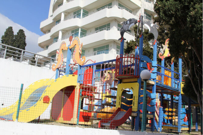 В отеле принимаются дети без возрастных ограничений. На территории имеется собственный парк с детскими площадками, песочницами, горками, качелями и другими игровыми объектами. В бассейне имеется отдельная мелководная чаша. Она без подогрева, поэтому доступна только в летний сезон. Вода пресная. Инструкторы готовы обучить ребенка разным стилям плавания.