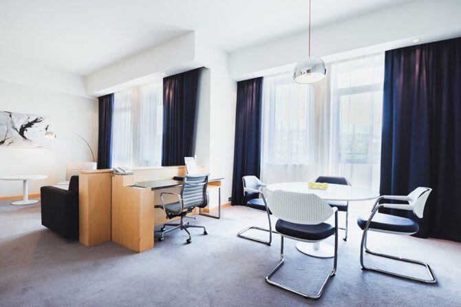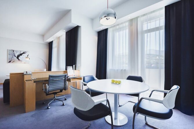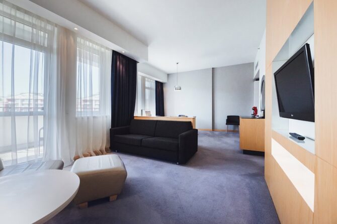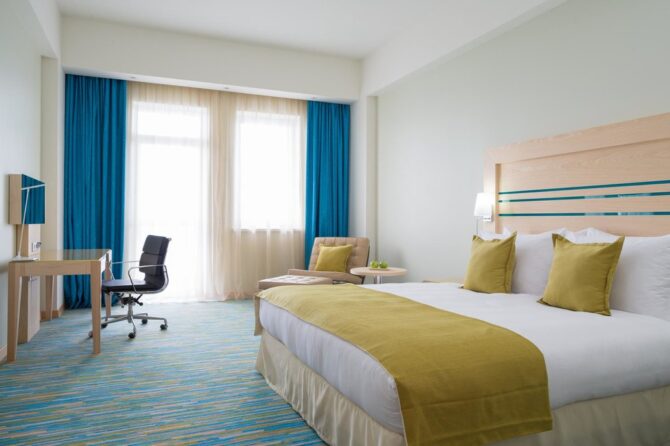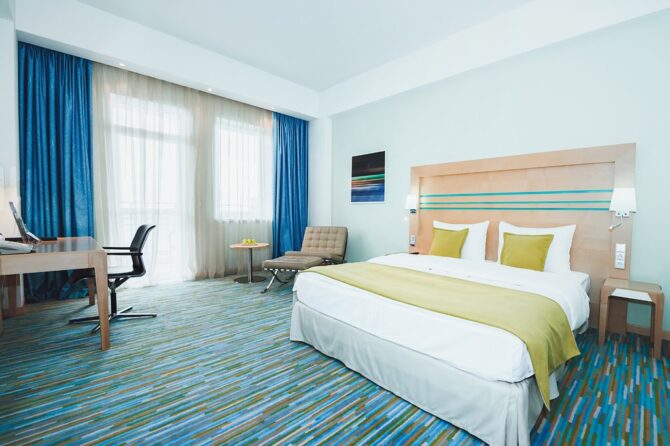 Всего в двух корпусах отеля 209 номеров трех категорий. Номерной фонд стандартизированы и соответствуют мировому уровню четырех звезд.