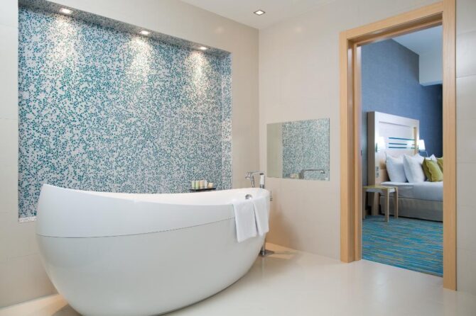 В Riviera Sunrise Resort & SPA много осталось от Radisson, а это значит, что в нем предоставляется пакетный сервис для детей, который включает аниматора и детские зоны во всех общественных местах отеля – например, около бассейна. Маленьким постояльцам выдают кроватку, а также стульчик для кормления – просто при бронировании нужно уточнить, что понадобится.