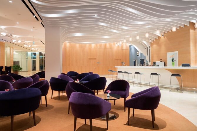 Расположен в СПА-комплексе, выглядит очень интересно, немного в восточном стиле. В нем удивительная акустика и поразительный комфорт для всех органов чувств.