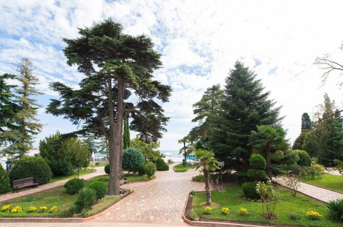 Бассейн с гидромассажными установками, окруженный старыми деревьями, спускается почти к самому морю. Впечатления незабываемые.