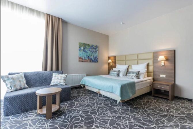 - двухместный комфорт – этот номер отлично подходит для тех, кто привык ценить пространство. Его площадь 34 м2, а рассчитан он на 2-х человек. Современный дизайн с удобной мебелью создают ощущение домашнего комфорта;