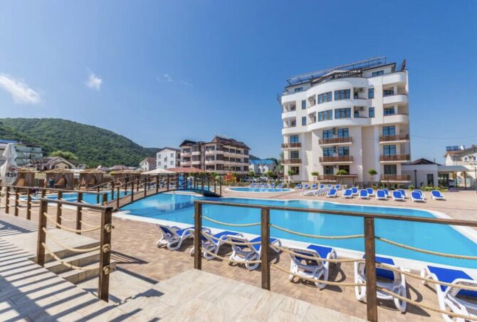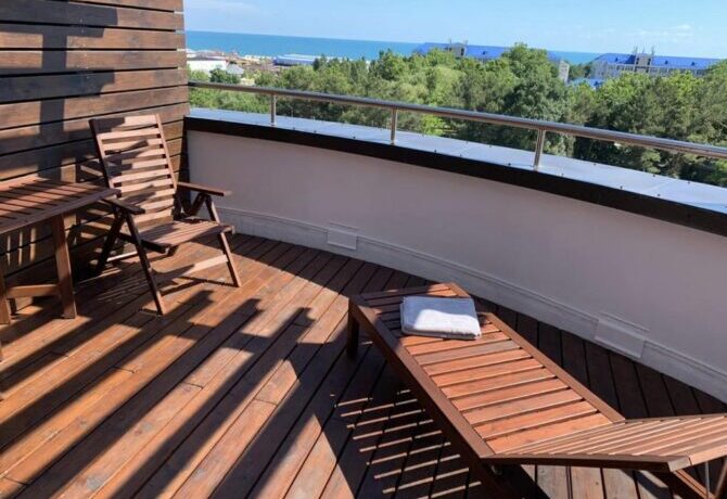 - апартаменты – площадь варьируется от 51 до 76 м2. Это номер повышенного уровня комфорта. Прекрасно подходит для больших семей или компаний. Есть полностью оборудованная кухня и обеденная зона. С балкона открывается вид на море.