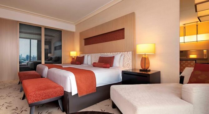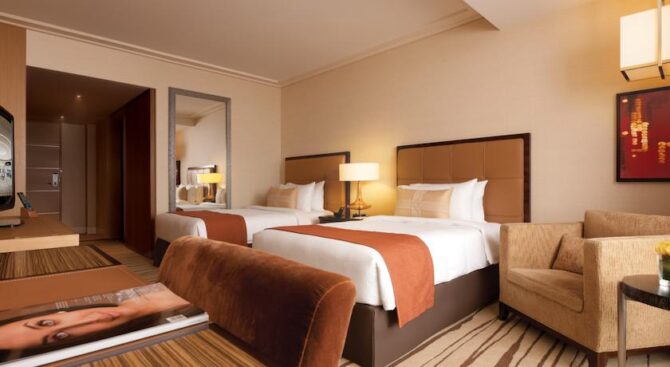 Полюбоваться на потрясающие красоты города можно со смотровой площадки, которая находится на 58 этаже здания. А также для путешественников, приезжающих на отдых в этот отель, работает спа-центр, который предлагает своим гостям заказать процедуры массажа. Работники отеля разговаривают на нескольких языках, среди которых китайский и английский.