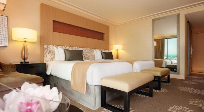 Каждый из номеров этого отеля в Сингапуре оснащен всем, что нужно даже самому взыскательному туристу. К услугам гостей Marina Bay Sands интернет с высокой скоростью, за который не придется вносить дополнительную плату, — он входит в стоимость проживания.