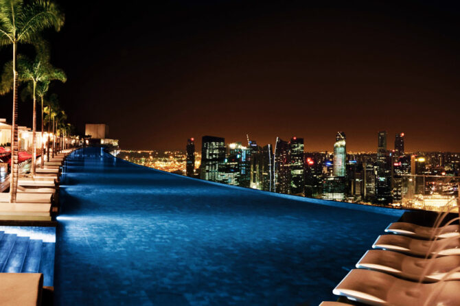 Одно из самых знаменитых сооружений в мире – отель с бассейном на крыше в Сингапуре Marina Bay Sands, — это место, в котором хотел бы побывать каждый путешественник. Здание возвышается прямо над заливом и включает 20 ресторанов с разнообразной кухней. Кроме того, в отеле находится казино, в котором азартные гости Сингапура могут попытать удачу.