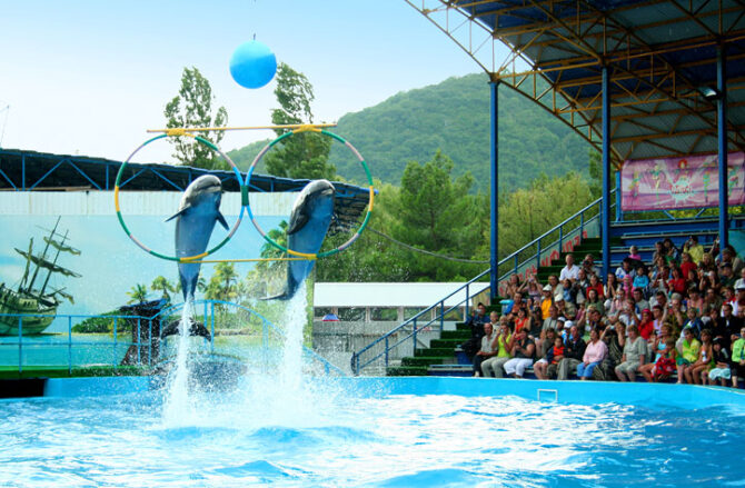 - Дети обожают посещать Геленджикский дельфинарий, представления здесь всегда проходят при полном зале. На его территории произрастают редкие растения и яркие цветы, и просто погулять здесь — огромное удовольствие.