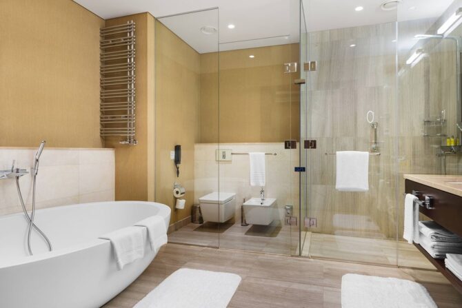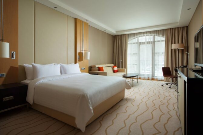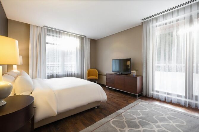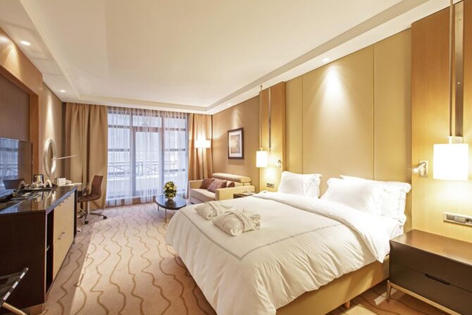 - Делюкс»Кинг» и «Твин» – в наличии 251 номер площадью до 32 кв.м. Рассчитаны на размещение двух человек. Разница состоит в том, что в Кинге установлена двуспальная кровать, а в Твине две односпальные.