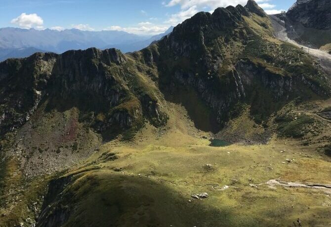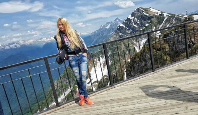 Прогулки включают в себя фотосессии на фоне вершин Кавказских гор, посещение подвесного моста, водопадов и других живописных мест горной олимпийской деревни.