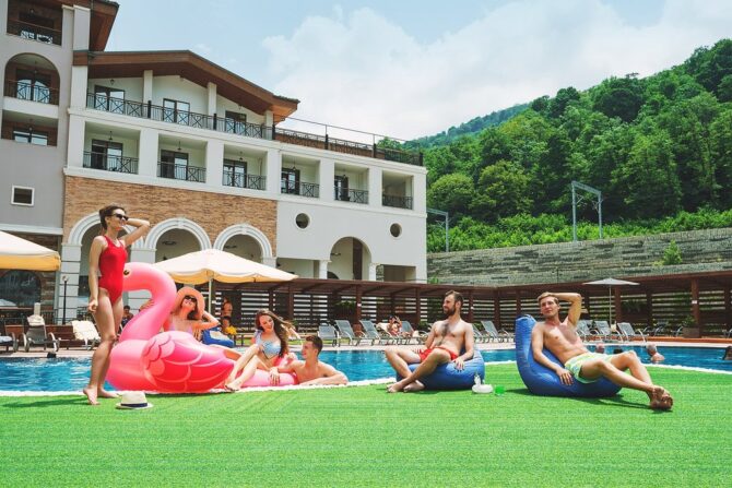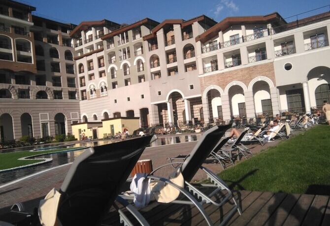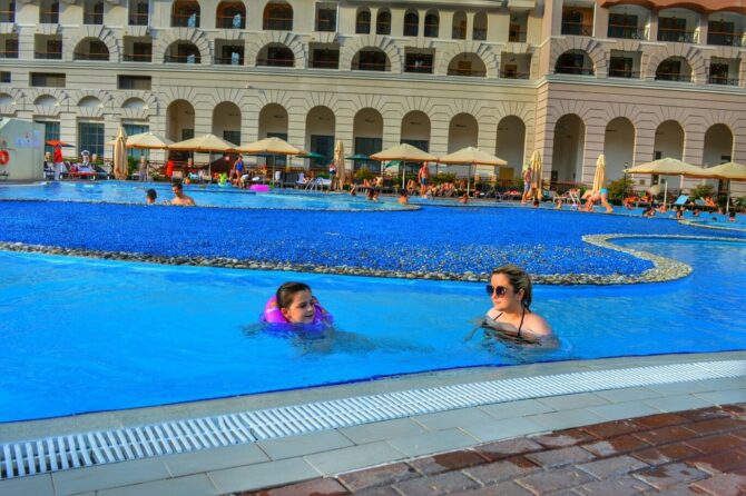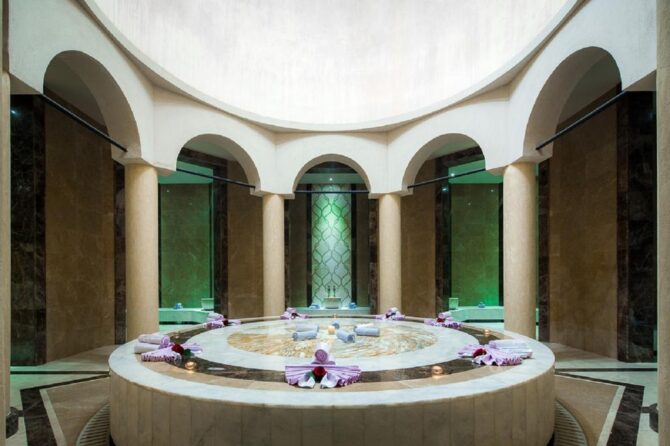 Кроме ночного клуба в отеле еще есть, чем заняться. Здесь оборудован прекрасный СПА-центр, готовый принять гостей отеля с утра и до позднего вечера. За процедуры потребуется оплата, а посещение бань, бассейнов и тренажерки входит в проживание. На территории открыто 3 бассейна – открытый (900 кв.м), крытый (750 кв.м) и детский. Для любителей спорта оборудован современный фитнес-зал с новейшими тренажерами и спортивным инвентарем. Погреться можно в турецкой бане (хаммам), финской сауне. Также термальный комплекс включает в себя терапевтические ванны с полезными маслами, молоком, морской солью.