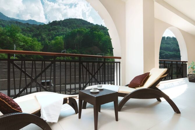 Во всех номерах есть балконы. Возможно проживание с домашними питомцами. Об этом нужно предупредить во время бронирования. Стоимость пребывания животного (до 15 кг с ветпаспортом) составит 4 тысячи рублей за весь период (цены актуальны на декабрь [y] г.). Гостям гарантировано 24-часовое обслуживание в номерах (room-serves), бесплатный высокоскоростной Wi-Fi по всей территории отеля.