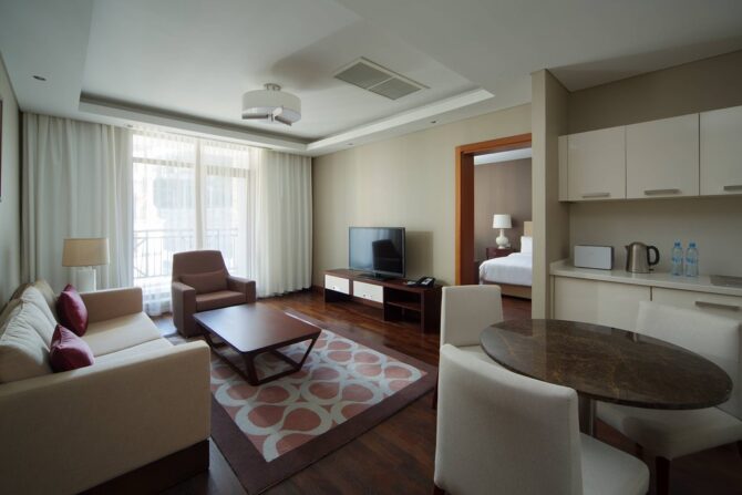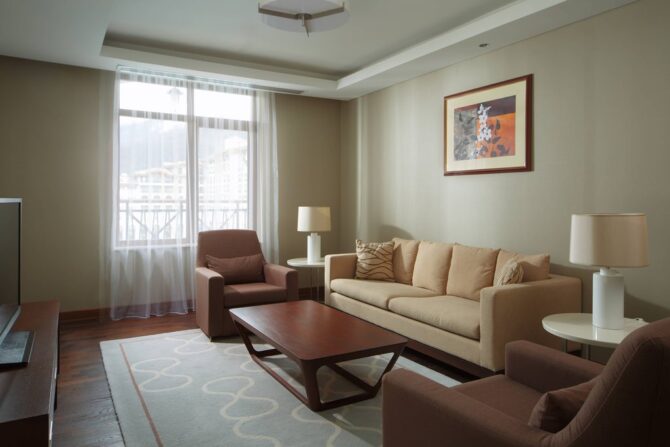 - Люкс – 44. Включают гостиную и спальню. Есть мини кухня с полным набором бытовой техники.