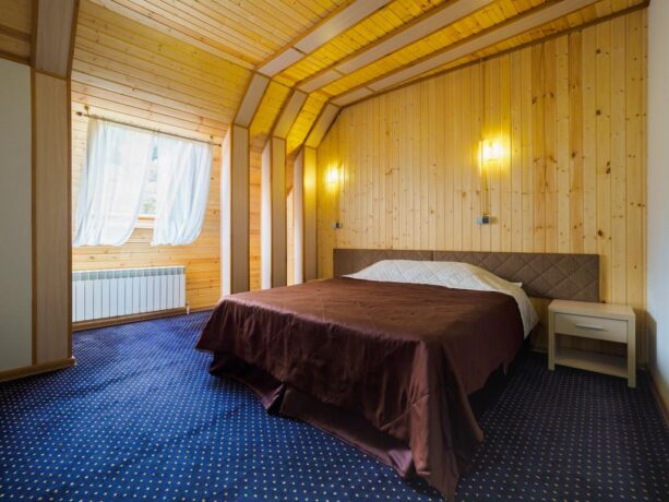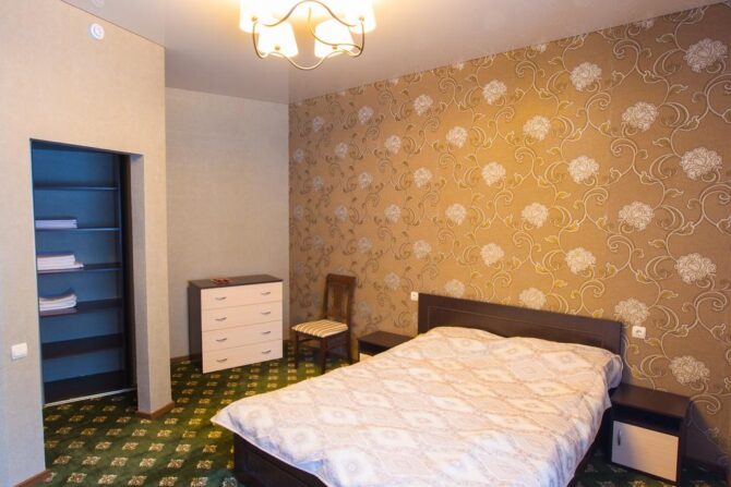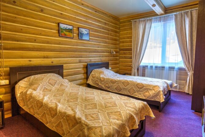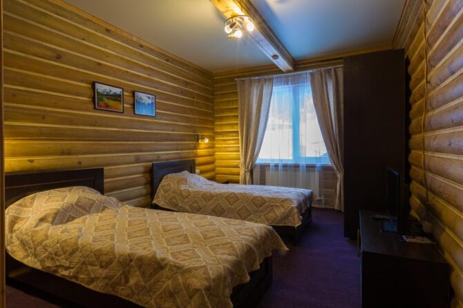 - Однокомнатный 2-х местный «Стандарт» (15 кв. м) – установлены двуспальная или 2 односпальные кровати, имеется место для «еврораскладушки», если заезжает компания из 3-х человек или семейная пара с ребенком.