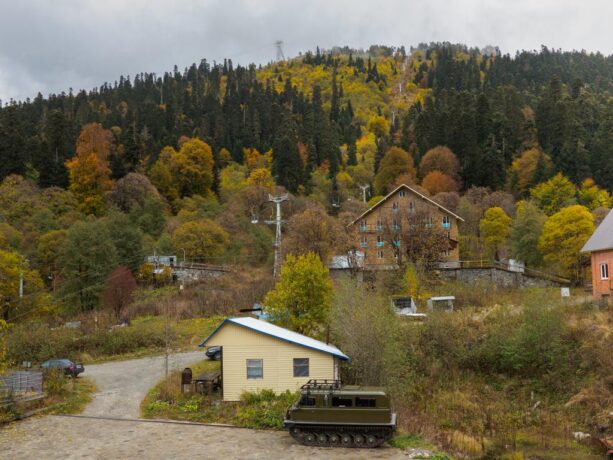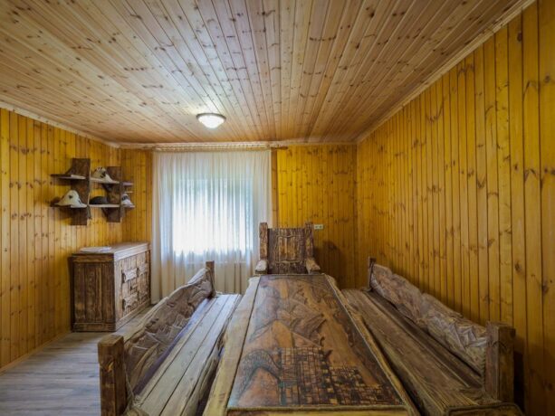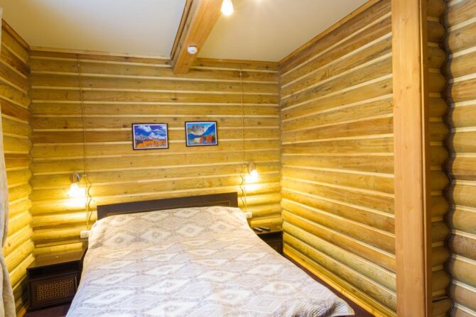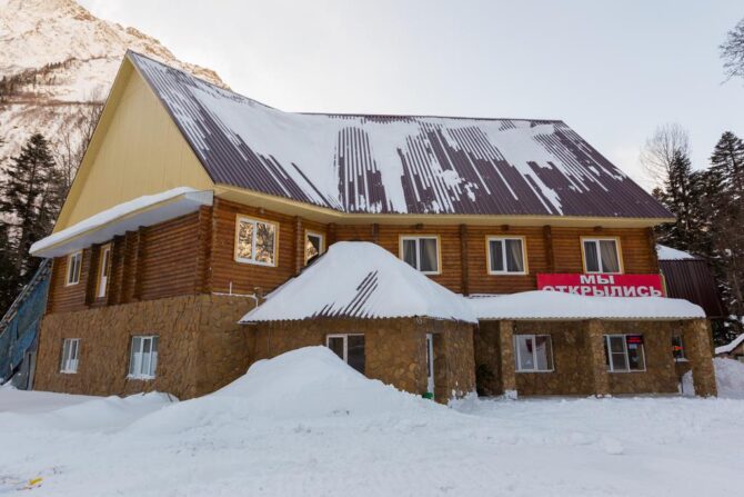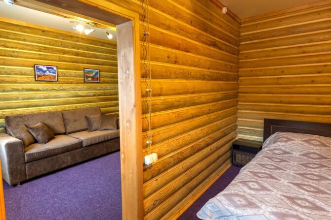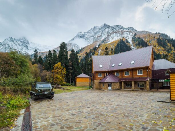 Уютное шале Суфруджу Лесной находится в Приэльбрусье на территории курорта Домбай. Его особенность состоит в том, что гостиница полностью построена из ангарской сосны. Экологически чистый отель расположен в окружении Кавказских склонов и лесной зоны. Из каждого окна отрывается вид на природу, а возле здания протекает горный ручей с родниковой водой. Главное достоинство – это минута ходьбы до канатно-кресельной дороги, которая находится практически во дворе гостиницы. Для гостей-автомобилистов предусмотрена бесплатная стоянка. Wi-Fi раздается по всей территории отеля, оплата входит в стоимость проживания.