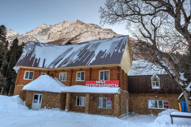 «Прекрасный отель с чистыми и уютными номерами. Находится прямо на въезде в Домбай. Подъемник во дворе, вокруг горы, деревья, бесплатный трансфер в поселок. Приветливый персонал ни в чем не отказывал, уборка производилась вовремя, пожелания учитывались. Мы остались довольны отдыхом, да и погода была прекрасная» Ольга, Россия