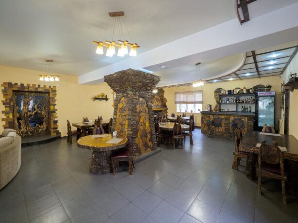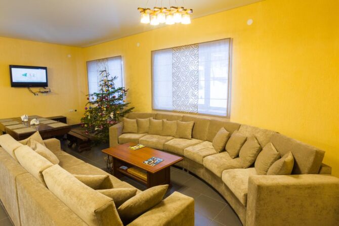 На первом этаже находится общая кухня с кулером, зона отдыха с настольными играми, видеоцентр. Территория круглосуточно охраняется. Ценные вещи можно отдать на хранение администратору. Одновременно гостиница может принять до 45 человек.