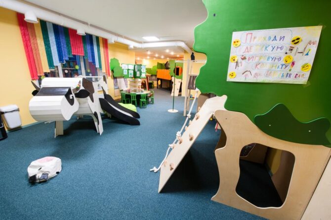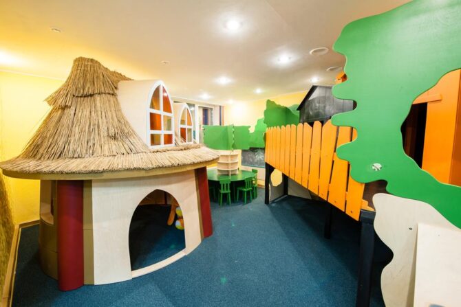 В отеле Тирвас Кировск с радостью принимают семьи с детьми. По запросу детям до 3 лет бесплатно предоставляется детская кроватка. В кафе предлагается вкусная выпечка и мороженое. В игровой комнате ваших детей будут развлекать профессиональные аниматоры, чтобы вы могли спокойно отправиться на процедуры или просто отдохнуть. Если вы хотите провести время в бассейне, то не будете волноваться за ребенка — там есть специальная зона для детей. В ней абсолютно безопасно, но при этом интересно, благодаря наличию специальной забавы-аттракциона для малышей.