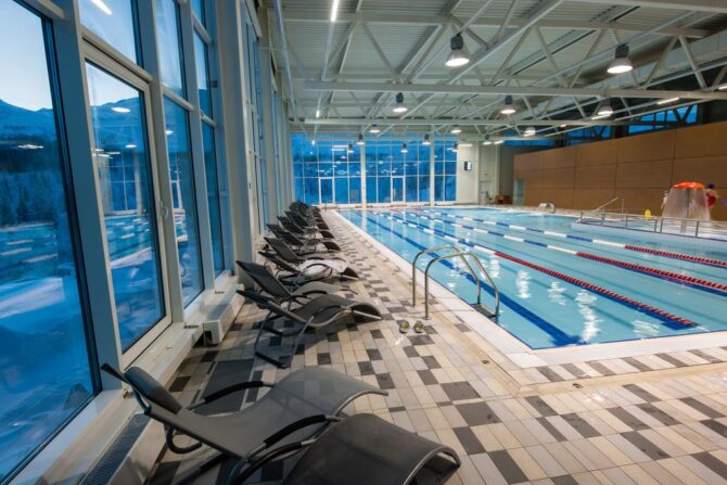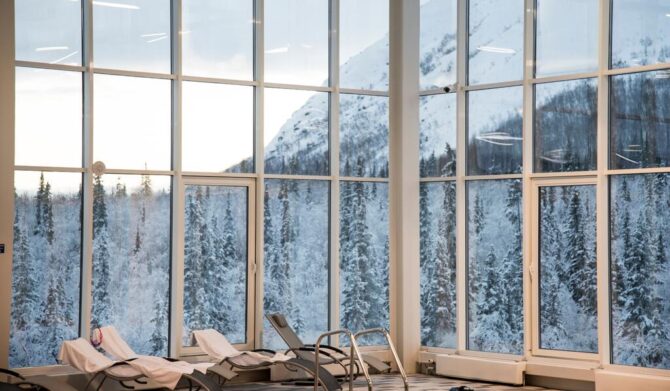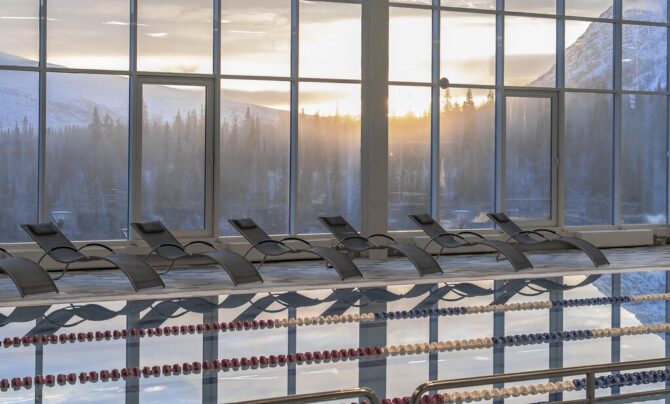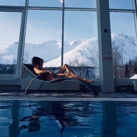 Изюминка отеля — это полноценный 25 метровый бассейн с подогревом и огромными во всю стену панорамными окнами, из которых открывается вид на фантастические пейзажи Хибин. Бассейн разделен на несколько аквазон, включая гидромассажную. В стоимость посещения бассейна входят турецкий хамам и финская сауна.