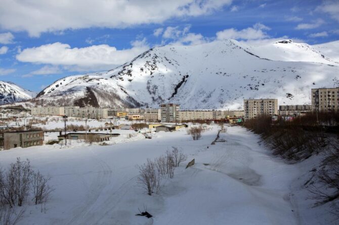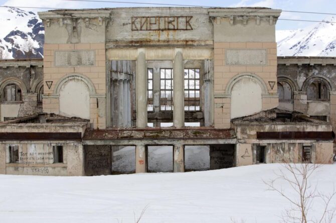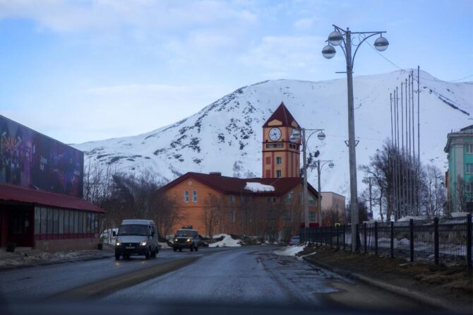 Город Кировск окружают с разных сторон величественные Хибины. Благодаря горному рельефу этот городок многоуровневый, его улицы то уходят вниз, то идут на подъем, постоянно причудливо изгибаясь. Город молодой, он был основан менее 100 лет назад в начале XX века, после того, как советские археологи обнаружили в этих местах апатито-нефтелиновое месторождение.