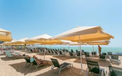 Расстояние до ближайшего пляжа составляет 800 метров. В его инфраструктуре имеются душевые, кабинки для переодевания, навесы, туалет. В пункте проката выдаются шезлонги, лежаки, зонтики, снаряжение для водных видов спорта и плавания. Покрытие – песок, вход в воду пологий, глубина нарастает постепенно. Возможность заниматься водомоторными видами спорта предоставляется за отдельную плату.
