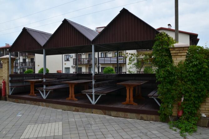 В самом отеле работает бар. Через его сотрудников можно заказать завтрак или ужин, а также выпить чашечку кофе или прохладительного напитка. Для большего комфорта отдыхающих во дворе обустроена терраса со столиками под теневыми навесами.