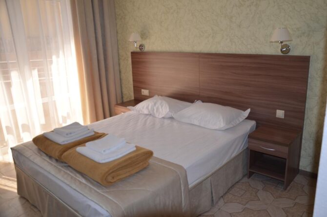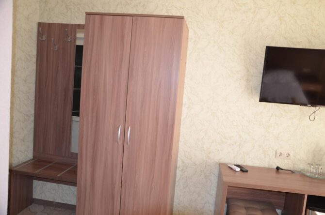 - Двухместный Стандарт – небольшие по площади номера расположены на первом этаже корпуса гостиницы. Максимальное число проживающих – 2 человека. Есть балкон. Окна выходят на жилой сектор поселка.