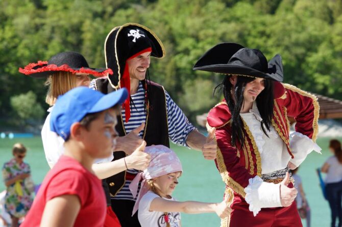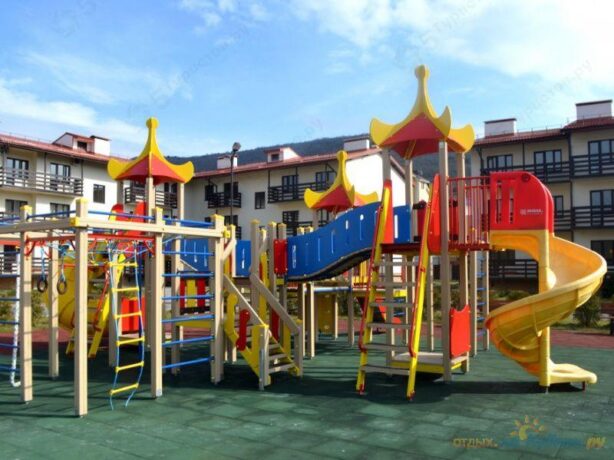 - детская игровая площадка в виде крепостной стены (находится у центрального пляжа). Все качели, карусели, лабиринты находятся под тенью деревьев;