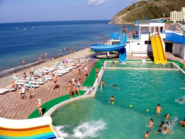 - мини-аквапарк, состоящий из бассейна и трех водных горок;