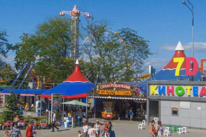 - парк отдыха с аттракционами, Колесом обозрения, каруселями и качелями.