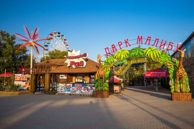 Находится совсем рядом с гостиничным комплексом. На его территории работают детские аттракционы, колесо обозрения, кинотеатр, комната страха и многое другое. Летом здесь открыт небольшой аквапарк с тремя горками и бассейном. Посетители «Малибу» могут покататься на лошадях, а также попрыгать на батутах.