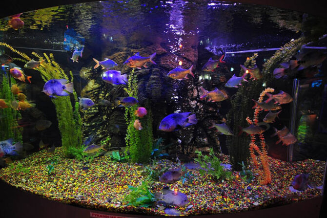 Пройти мимо достаточно сложно. Вход в здание выполнен в виде огромной акулы, которая является символом Океанариума. Выставочное пространство здесь поделено на несколько залов. В больших аквариумах можно увидеть таких пресноводных рыб, как хищные пираньи и яркие цихлиды. Большую популярность среди малышей имеют редкие морские обитатели: папуанские черепахи, африканская рыба протоптер и глазчатый индийский нож. В одном из залов представлена экспозиция древних окаменелостей, возраст которых исчисляется тысячелетиями.