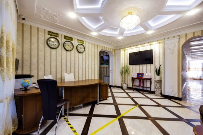 Внимание! Стойка регистрации работает круглосуточно. За дополнительную плату здесь можно заказать трансфер в аэропорт или Геленджик. Администрация отеля готова помочь в выборе и приобретении билетов на местные экскурсии и мероприятия.