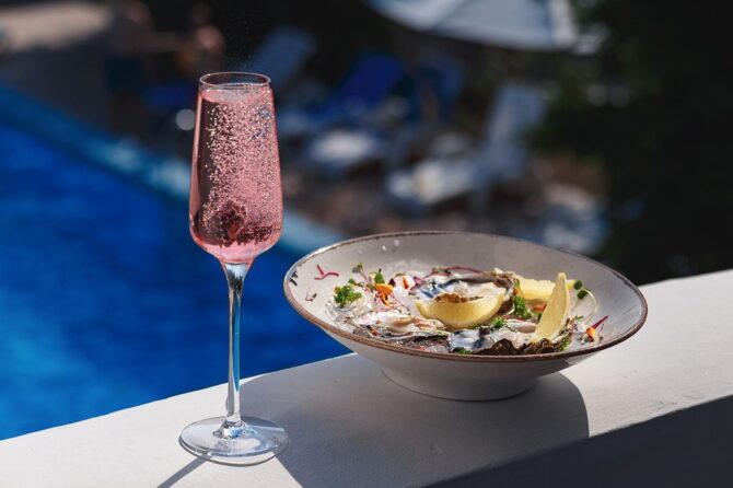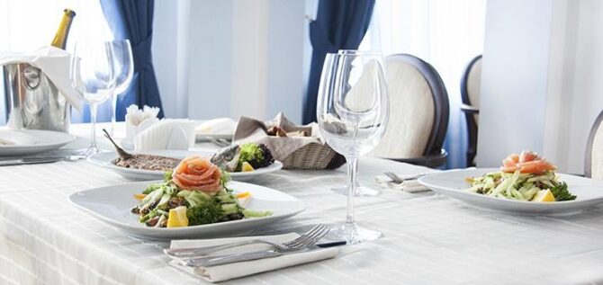 Отель «Усадьба Голубой Залив» предлагает своим гостям завтрак по системе «шведский стол», а также за дополнительную плату обед и ужин.