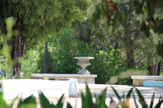 - Парк и Кипарисовая аллея. Парк рядом с отелем «Усадьба Голубой Залив» — самое красивое место в округе. Ежедневно Симеизский парк посещает большое количество туристов. После прогулки можно отдохнуть на скамейках, которые расположены в тени высоких и густых деревьев. Здесь можно защитить себя от солнца и насладиться свежим и чистым воздухом. На кипарисовой аллее расположены статуи древнегреческих героев.