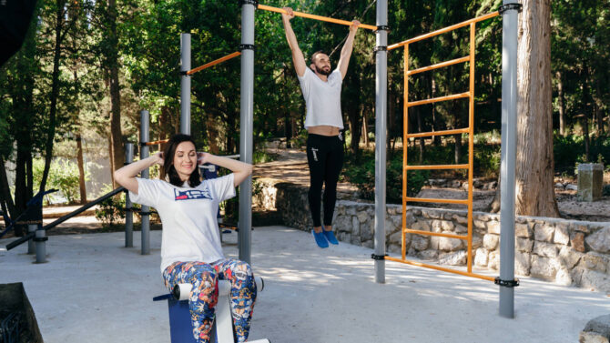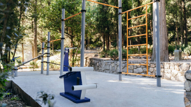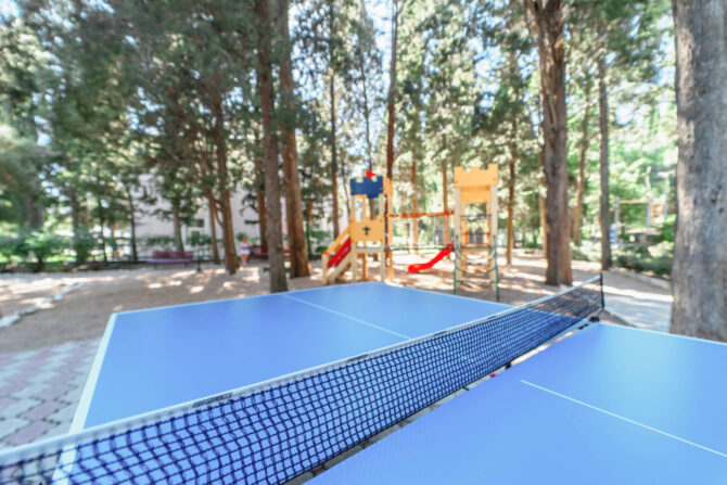 В отеле «Усадьба Голубой Залив» есть необходимое для занятий спортом. Например, утром можно провести зарядку на современной и удобной тренировочной площадке прямо в можжевеловом лесу. А вечером посетить тренажерный зал, оснащенный современным профессиональным оборудованием. Открытая многофункциональная спортивная площадка, где можно поиграть в различные игры с мячом открыта в любое время суток.