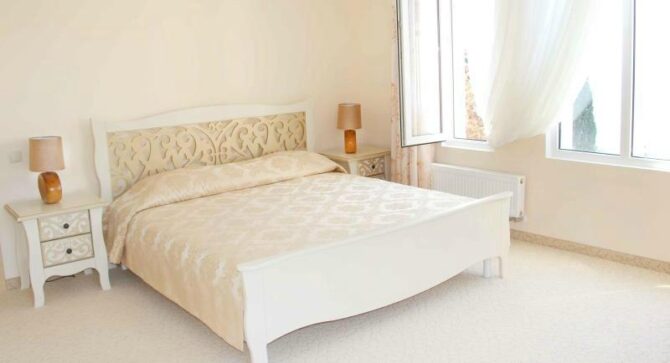 - Комфортный номер премиум-класса. Большой номер, расположенный в этой вилле. Открывается вид на морское побережье и парковую зону. Эти номера размещены на 2 и 4 этажах. Есть большая двуспальная кровать с ортопедическим массажем и другая мебель для проживания. Также есть рабочая зона.