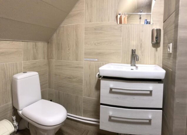 Во дворе живут милые дружелюбные собаки. Хороший гостевой дом: в номере хороший свежий ремонт, новая мебель и отделка, особенно плитка в ванной очень красивая. Никакой сырости и плесени. Понравилось ещё то, что отель предложил оборудованную сушилку для инвентаря, за ночь все прекрасно высохло. Минусом считаю, что в номере ни разу не убирали, хотя это и не заявлено в услугах, поэтому все честно. Также не было чайника и стаканов, но администрация оперативно все принесла. Определенно есть куда расти, но и сейчас все неплохо.